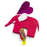 3. Вырежьте два небольших сердца из цветной бумаги и напишите сообщение на одной стороне. Сложите сердце вдоль пополам и пронзите их через щели, чтобы сформировать уши слона и клыки.